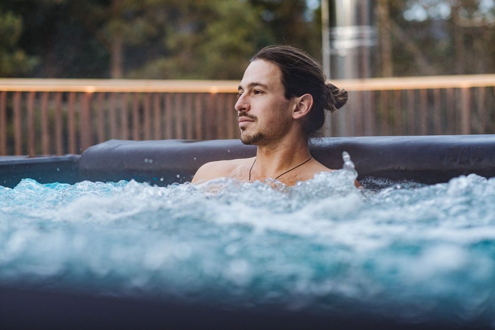 Stellen Sie sich vor: wohlig warmes Wasser, klare Bergluft, ein entspannendes Lichtspiel im Freien und entspannte Hintergrundmusik.